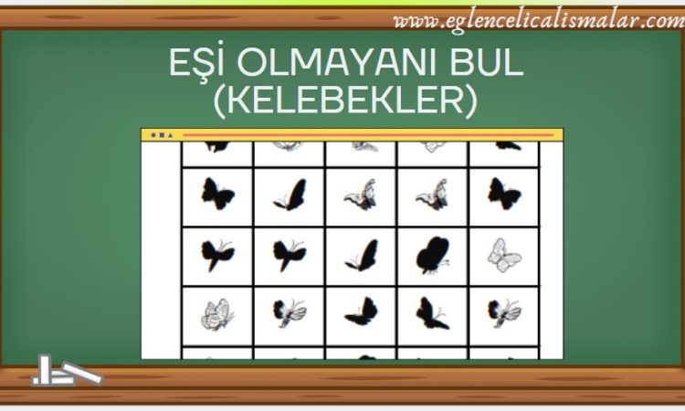 Eşi Olmayanı Bul (Kelebekler) eğlenceli bir dikkat geliştirme bulmacasıdır. ilkokulun her seviyesinde kullanılabilir. Her bir sayfa iki farklı bölümden oluşmaktadır. Bu tabloların her birinde eşi olmayan şeklin bulunup işaretlenmesi isteniyor. Cevap anahtarları her bir setin altına eklenmiştir. Set 30 sayfa ve 60 bölümden (bulmaca) oluşmaktadır. Faydalı olması dileğiyle.