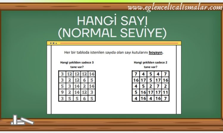 Hangi Sayı (Normal Seviye) dikkat etkinliğinde, verilen tablolarda hangi sayıdan istenilen sayıda bulunduğunun bulunması istenmektedir. Her bir sayfada 2 farklı bölüm ve 4 tablo bulunmaktadır. Set toplam 50 sayfa ve 100 bölüm ve 200 bulmacadan (tablo) oluşmaktadır. Her bir etkinlik sayfasının altında cevap anahtarı bulunmaktadır. Faydalı olması dileğiyle.