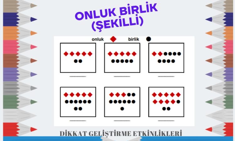 Onluk Birlik (Şekillerle) etkinlik setinde tabloların başında onluk ve birlikleri temsil edecek şekiller verilmiştir. Tablolarda ise bu onluk  ve birlikler kullanılarak sayılar oluşturulmuştur. Bu sayıların değerlerinin girilmesi istenilmektedir. Set birbirinden bağımsız iki bölüm ve cevap anahtarından oluşmaktadır. Sette toplam 30 sayfa, 60 etkinlik bulunmaktadır.