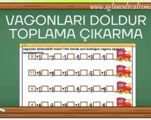 Vagonları Doldur (Toplama Çıkarma) etkinlik seti 50 sayfa ve toplamda 100 bölümden oluşmaktadır. Her bir trende son vagonda verilen sayılardan başlanılarak istenilen işlemlerin sırasıyla yapılması