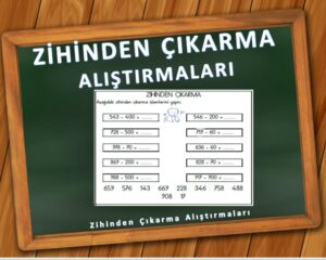 Zihinden çıkarma alıştırmaları, 4.sınıf seviyesinde zihinden yapılabilecek işlemlerden oluşmaktadır. Bir sayfada birbirinden bağımsız 4 farklı bölüm bulunmaktadır. Parçalara ayrılıp farklı zamanlarda kullanılabilir. Her bir bölümde